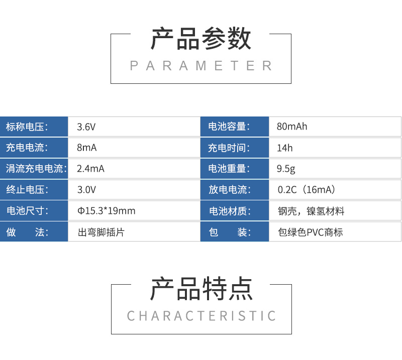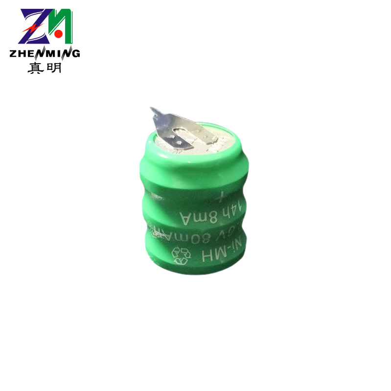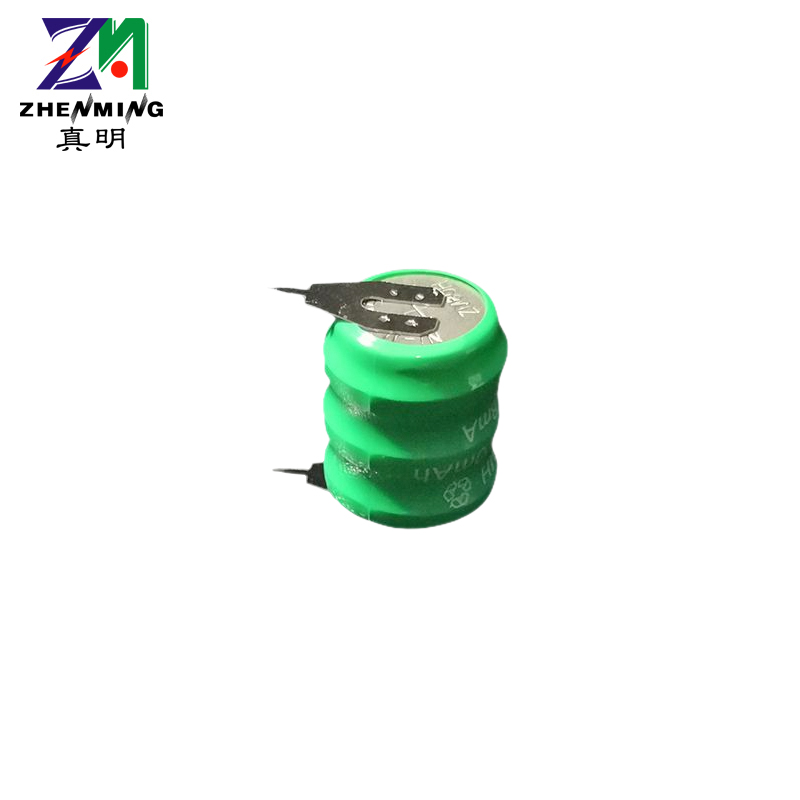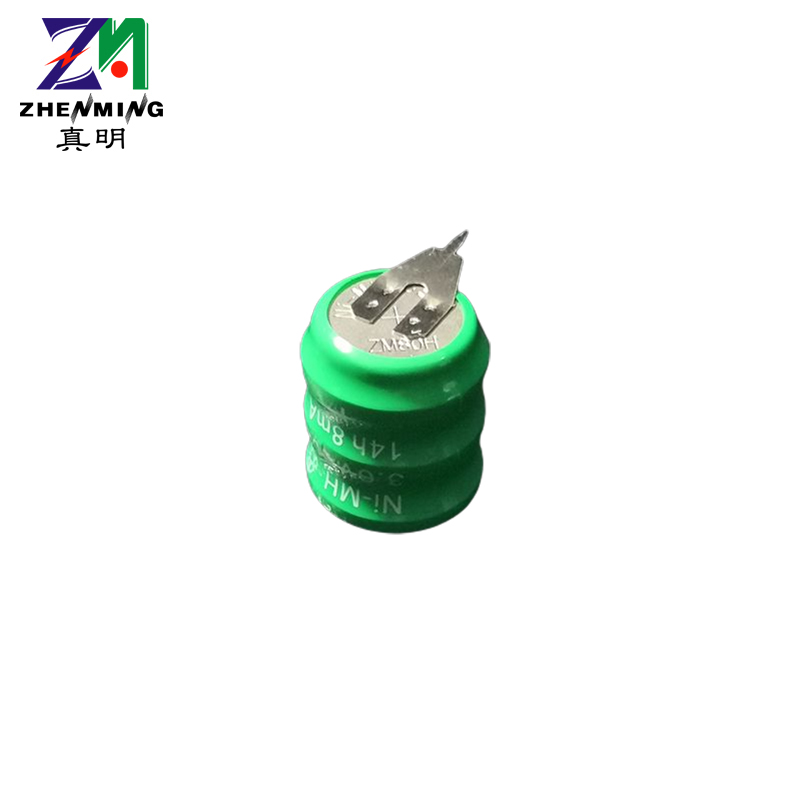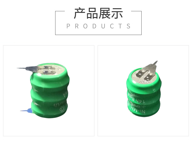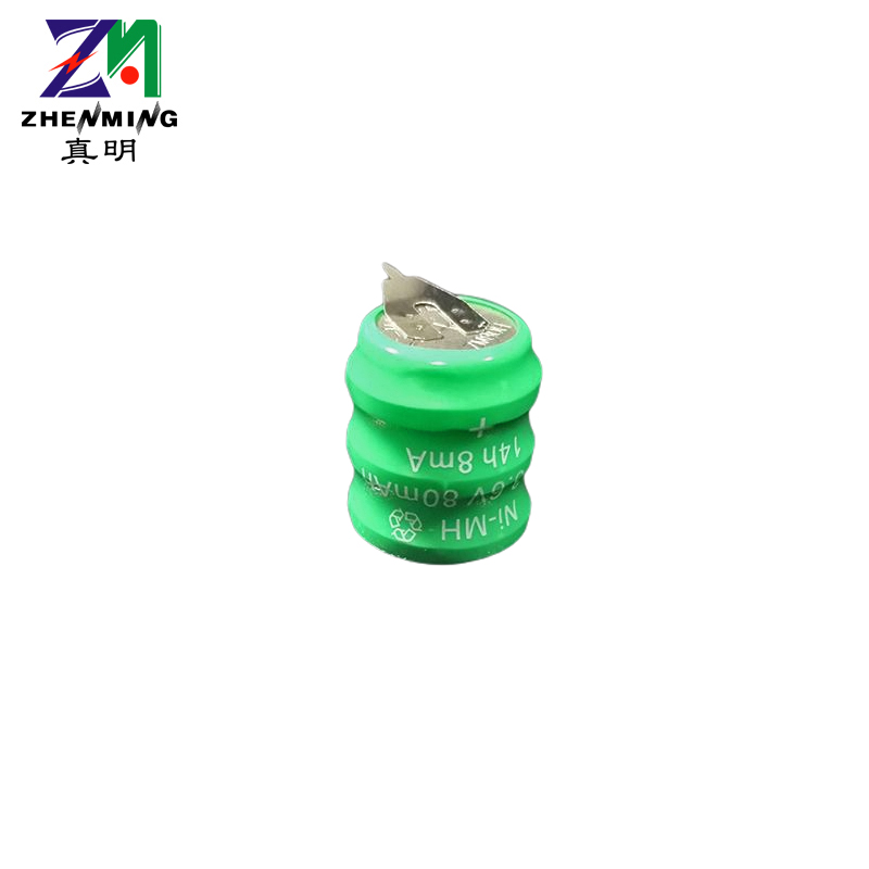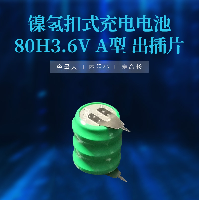 80H 3.6V帶腳鎳氫扣式電池是由3個80H扣式鎳氫電池層疊串聯組合而成的柱形鎳氫充電電池,其電壓為3.6V,容量80mAh,可根據客戶要求提供個性化定制加工。