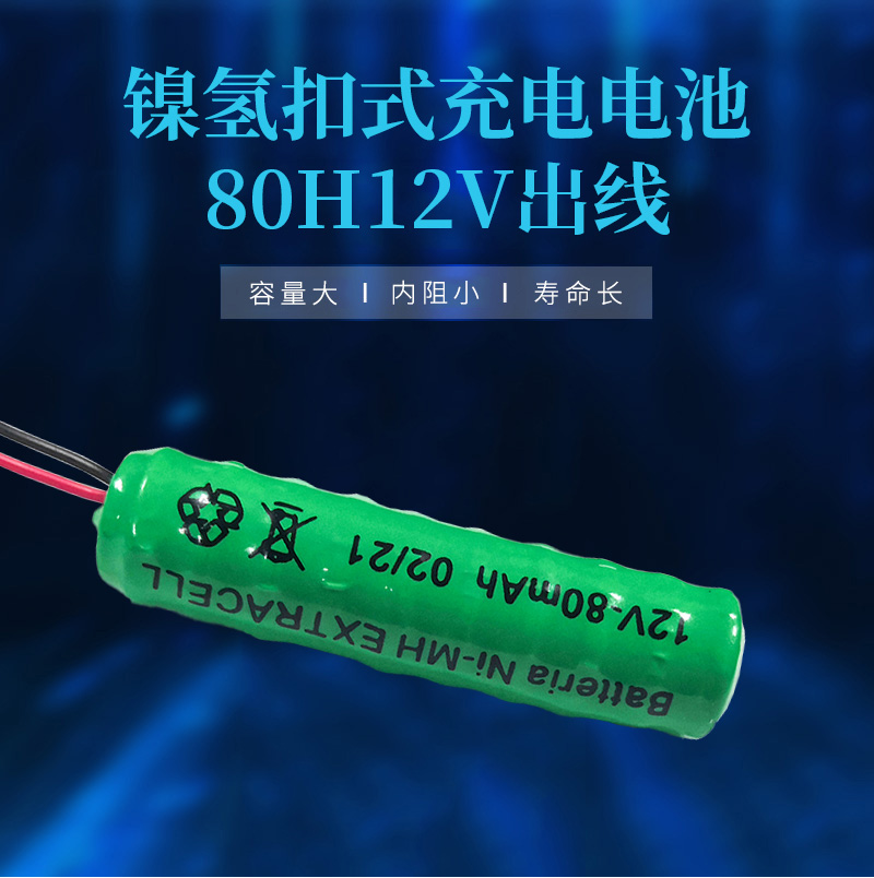 80H 12V帶腳鎳氫扣式電池是由10個80H扣式鎳氫電池層疊串聯(lián)組合而成的柱形 鎳氫充電電池,其電壓為10V,容量80mAh,可根據(jù)客戶要求提供個性化定制加工。