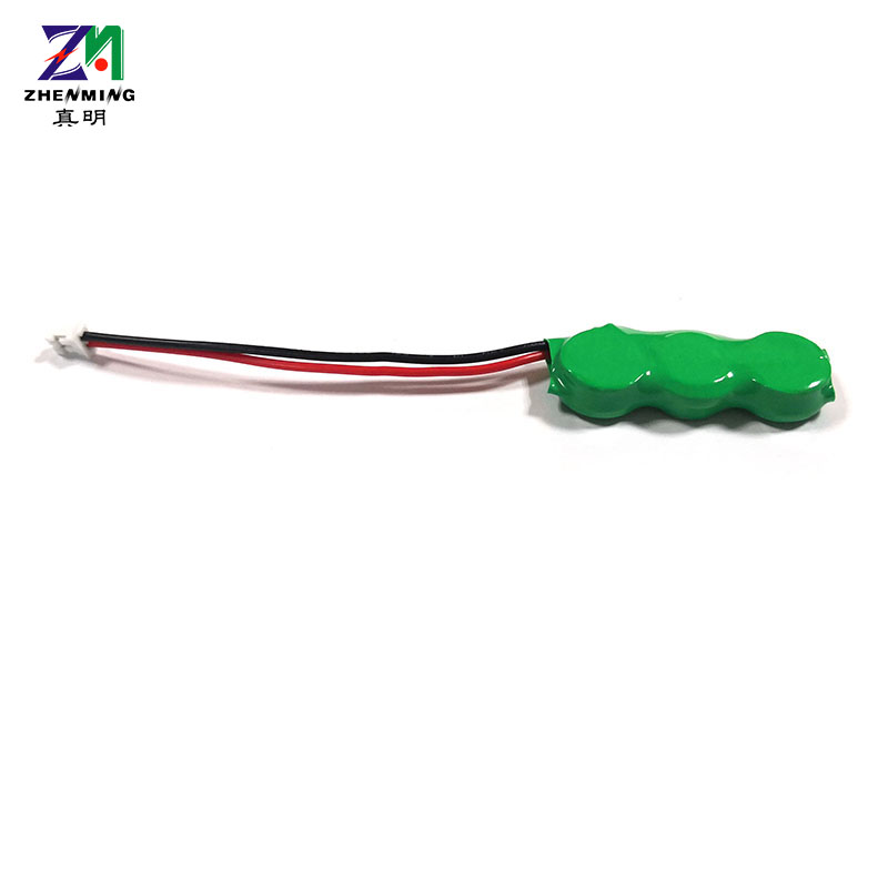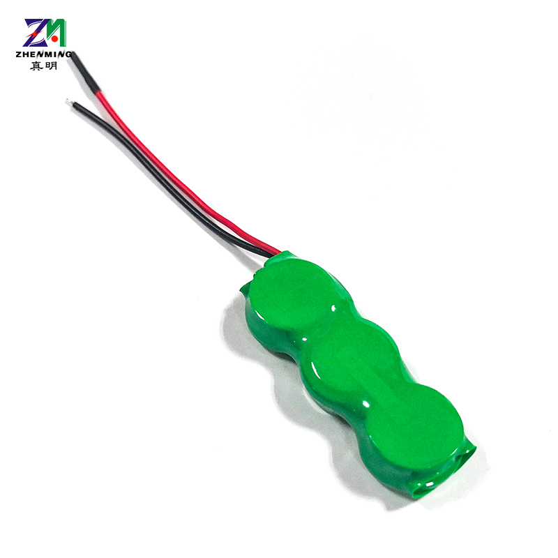 110H 3.6V帶線鎳氫扣式電池是由3個110H扣式鎳氫電池層疊串聯組合而成的柱形鎳氫充電電池,其電壓為3.6V,容量110mAh,可根據客戶要求提供個性化定制加工。